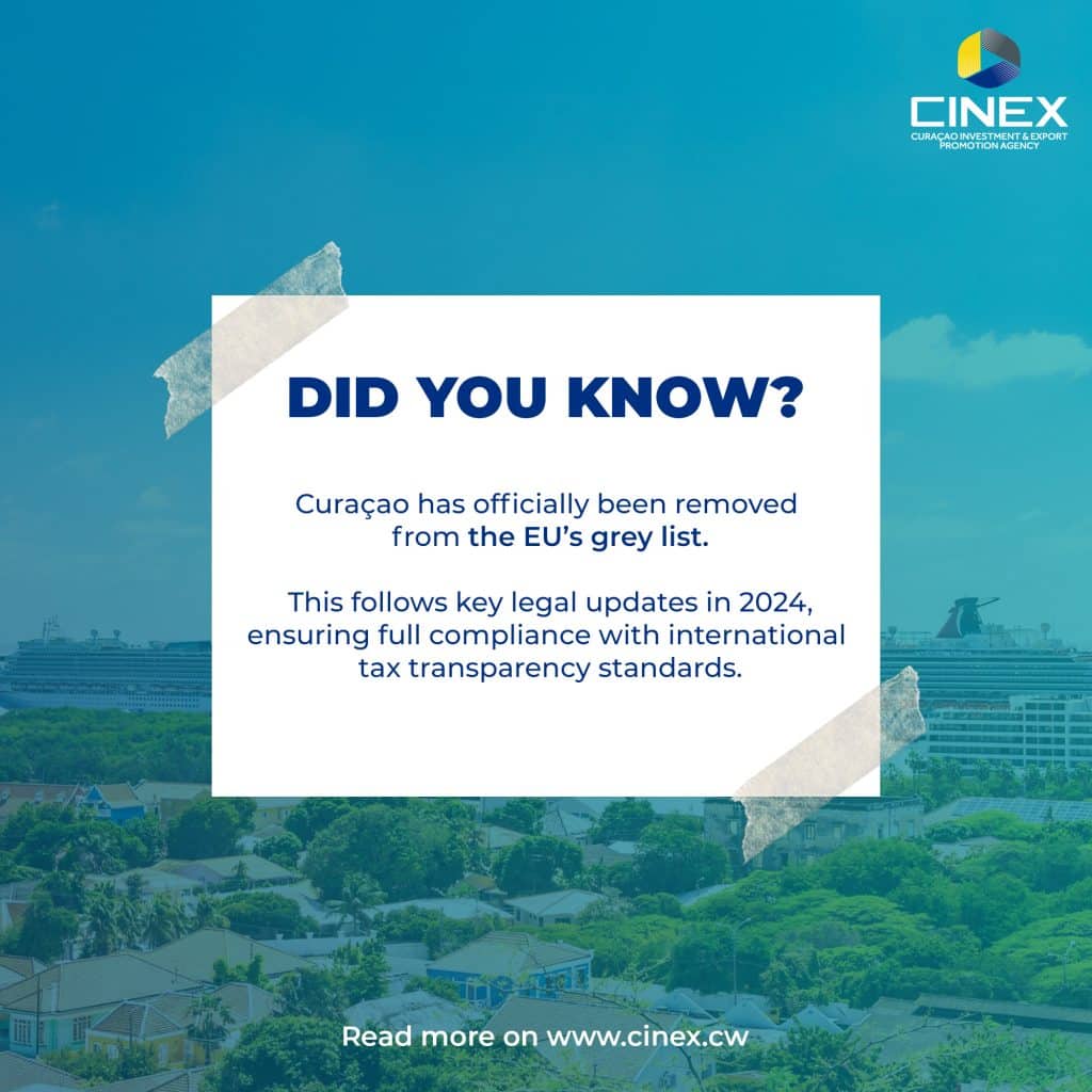 Curaçao has officially been removed from the EU’s grey list, a list for countries working to improve their tax policies. This follows key legal updates in 2024, ensuring full compliance with international tax transparency standards. This achievement strengthens trust and credibility, making Curaçao more attractive for international investments and business growth.